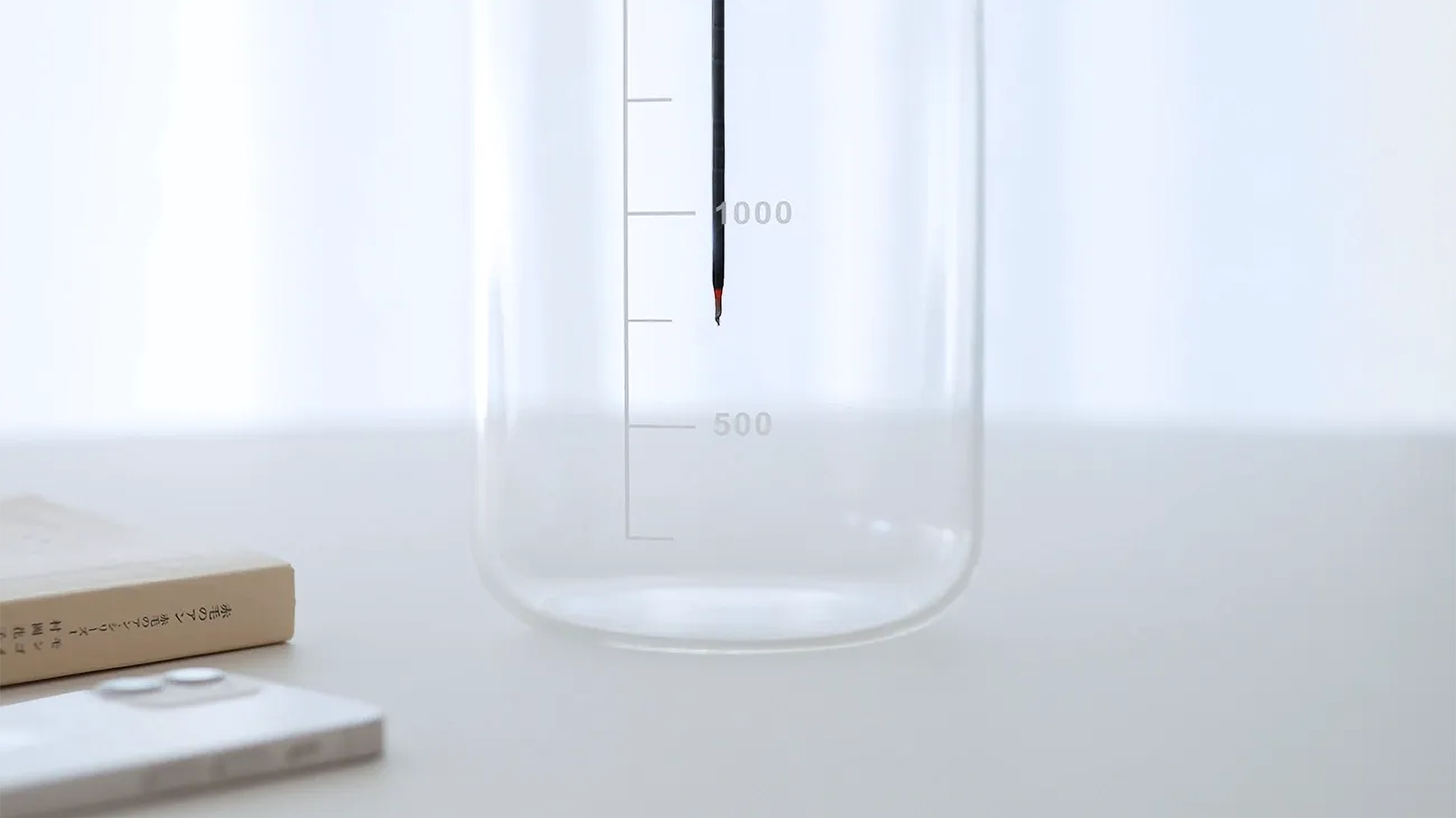 軸ありインセンスと軸なしインセンスについては、ビーカー側面の目盛りを手がかりに、「今日は三目盛り分だけ楽しもう」という使い方ができます。スマホなどで時間を確認しなくてよいので、チルタイムに没頭することができます。