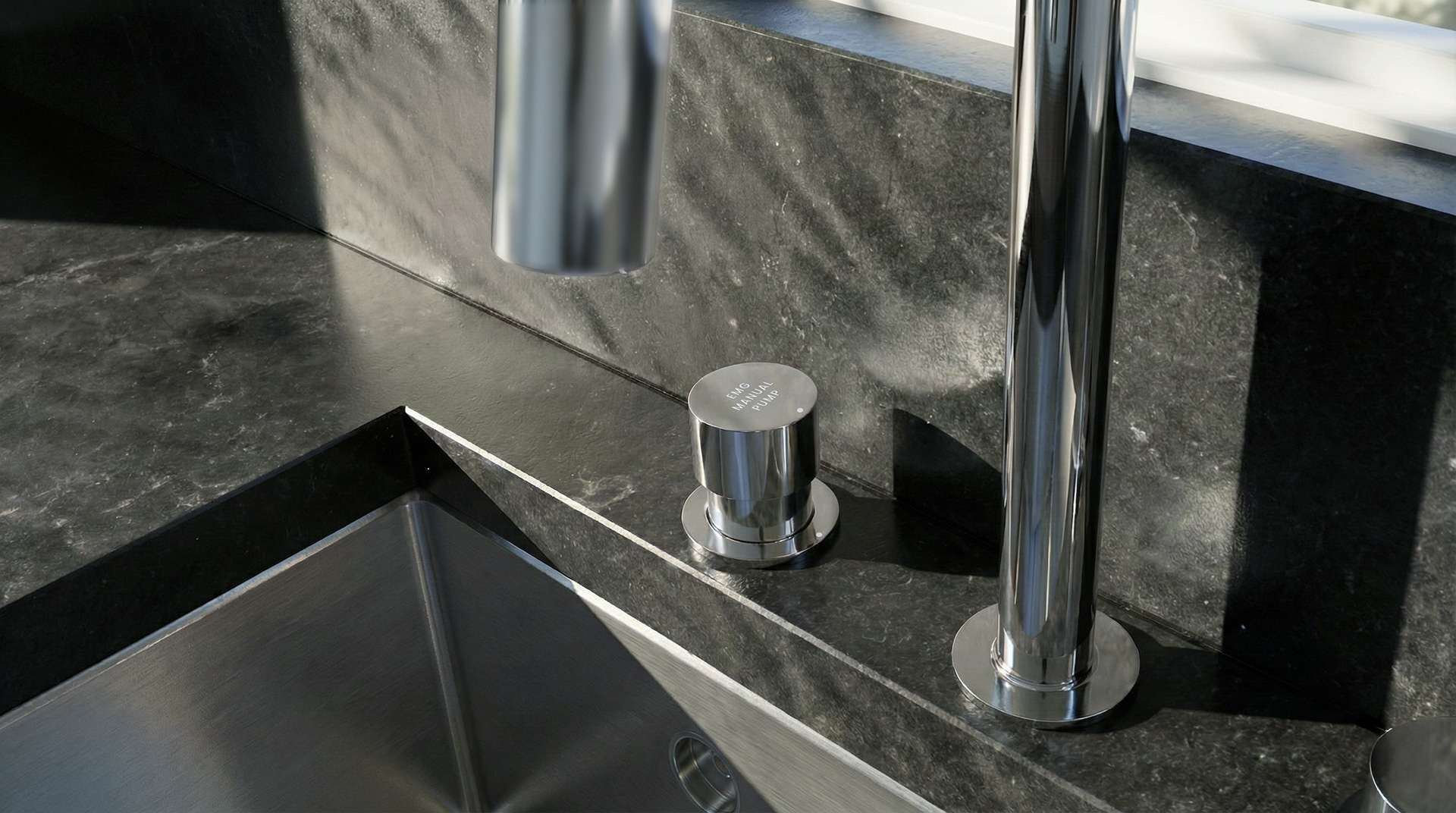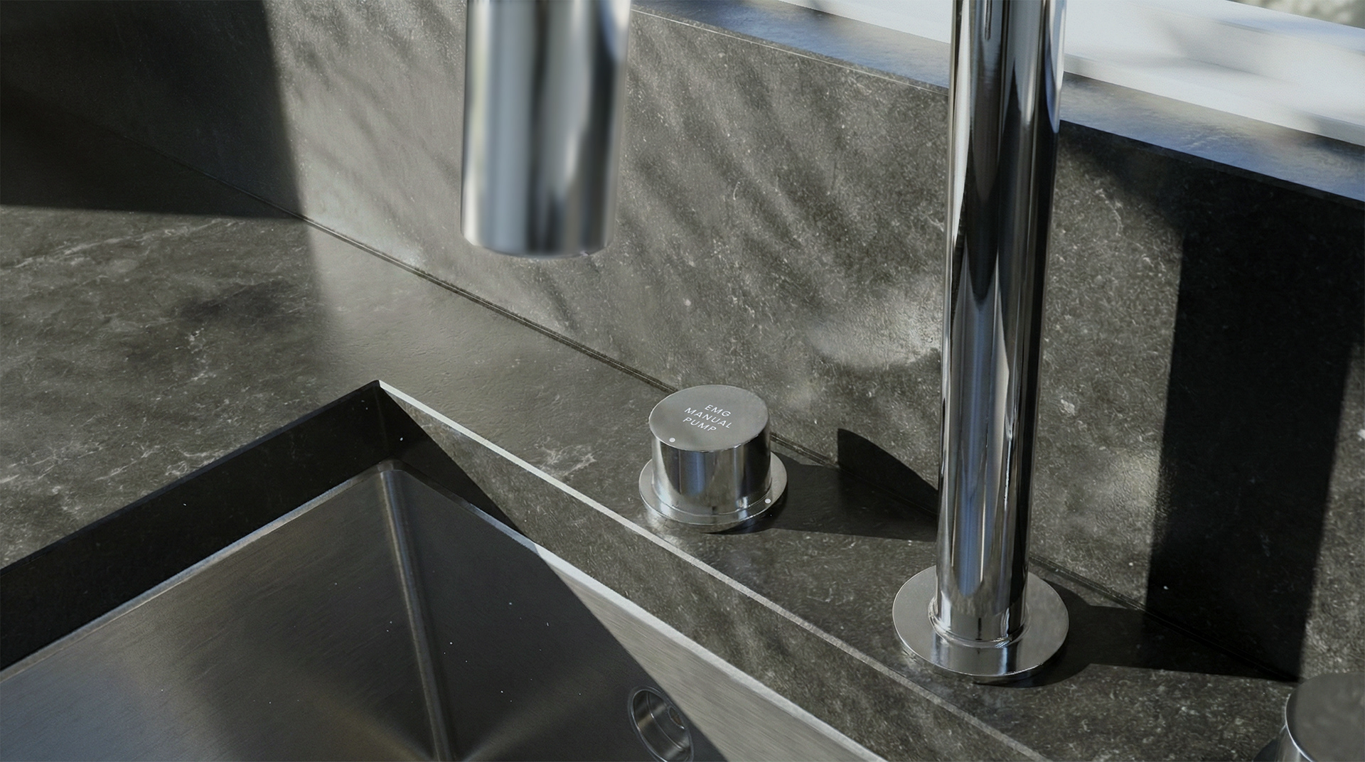 手押しポンプの機能をキッチン水栓に持たせ、水道管内に貯まっている水を取り出し使用できるようにすることで、日頃から備蓄をしなくても良い状態をつくります。