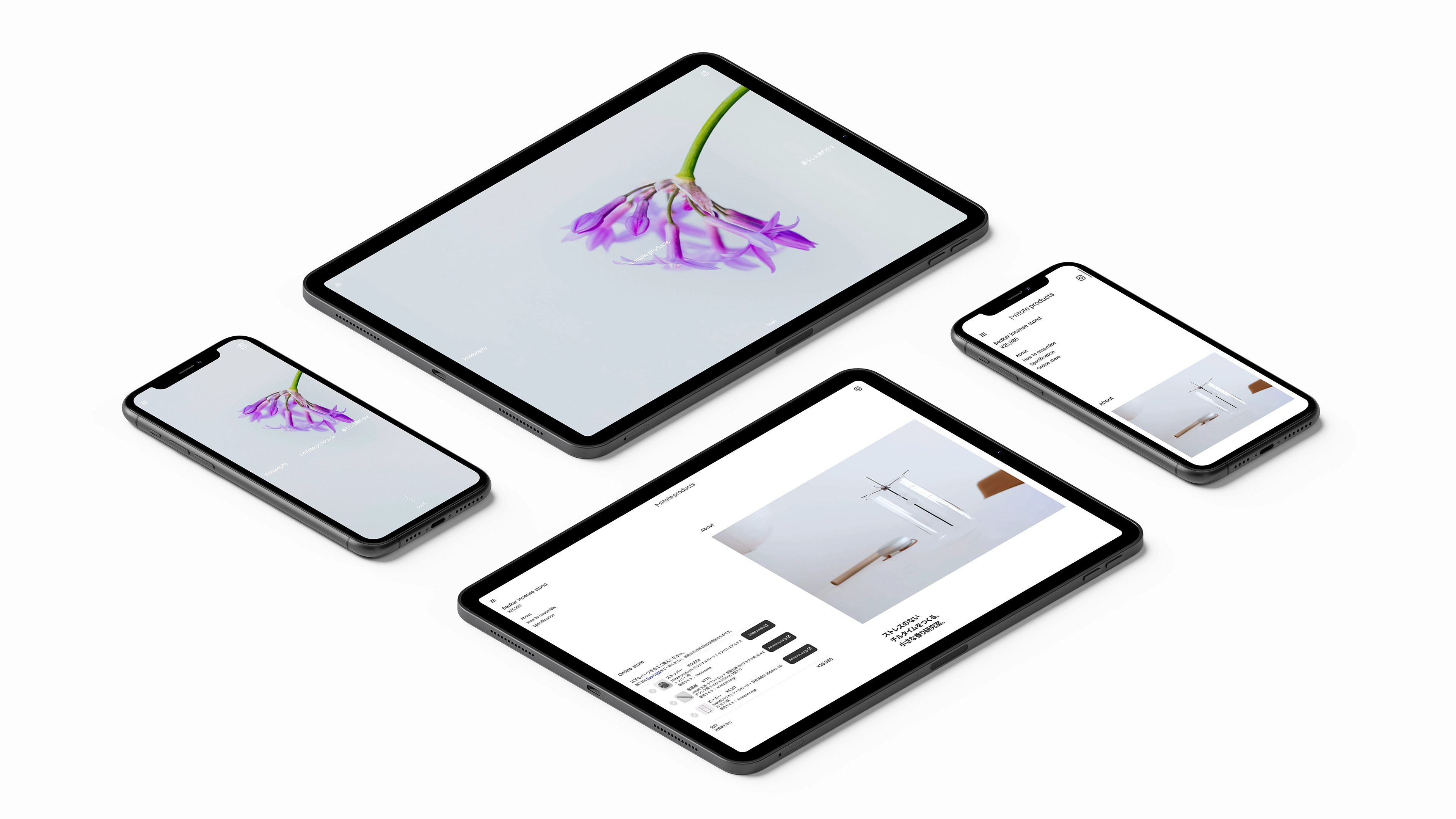 Mitate productsのロゴは、90度回転させた「Σ(シグマ)」を「M」の字に見立てることでできています。数学においてΣ(シグマ)は「和」を意味しますが、新たな用途に見立てた複数の既製品を「組み合わせ(=和)」て、それらが調「和」することで、新しい価値をつくりたいという思いを込めました。